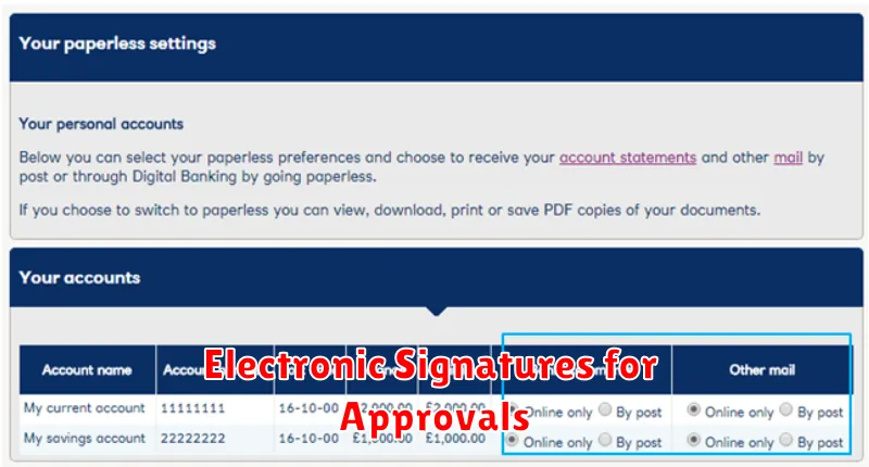Electronic signatures are transforming approval processes in paperless banking. They offer a secure and efficient alternative to traditional wet-ink signatures, significantly reducing transaction times.